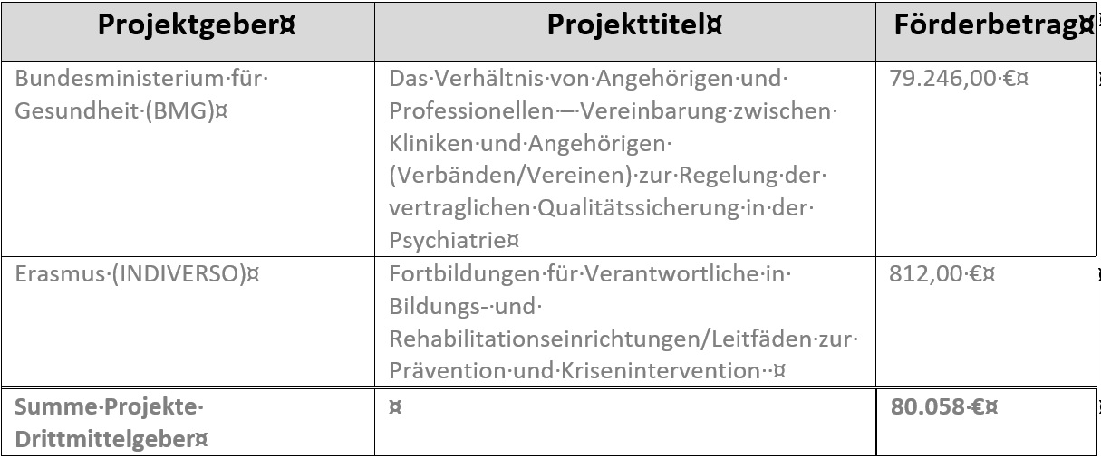 Förderungen 2016: Das Bundesministerium für Gesundheit für das Projekt „Die Entwicklung von Kooperationsvereinbarungen zwischen psychiatrischen Kliniken sowie der gemeindepsychiatrischen Trägern und Angehörigen als Teil der Qualitätssicherung“