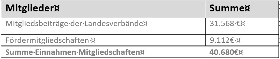 Satzungsgemäß haben Fördermitglieder weder Stimm- noch Wahlrecht in der Mitgliederversammlung. Die Höhe der Fördermitgliedsbeiträge liegt bei max. 750 €.